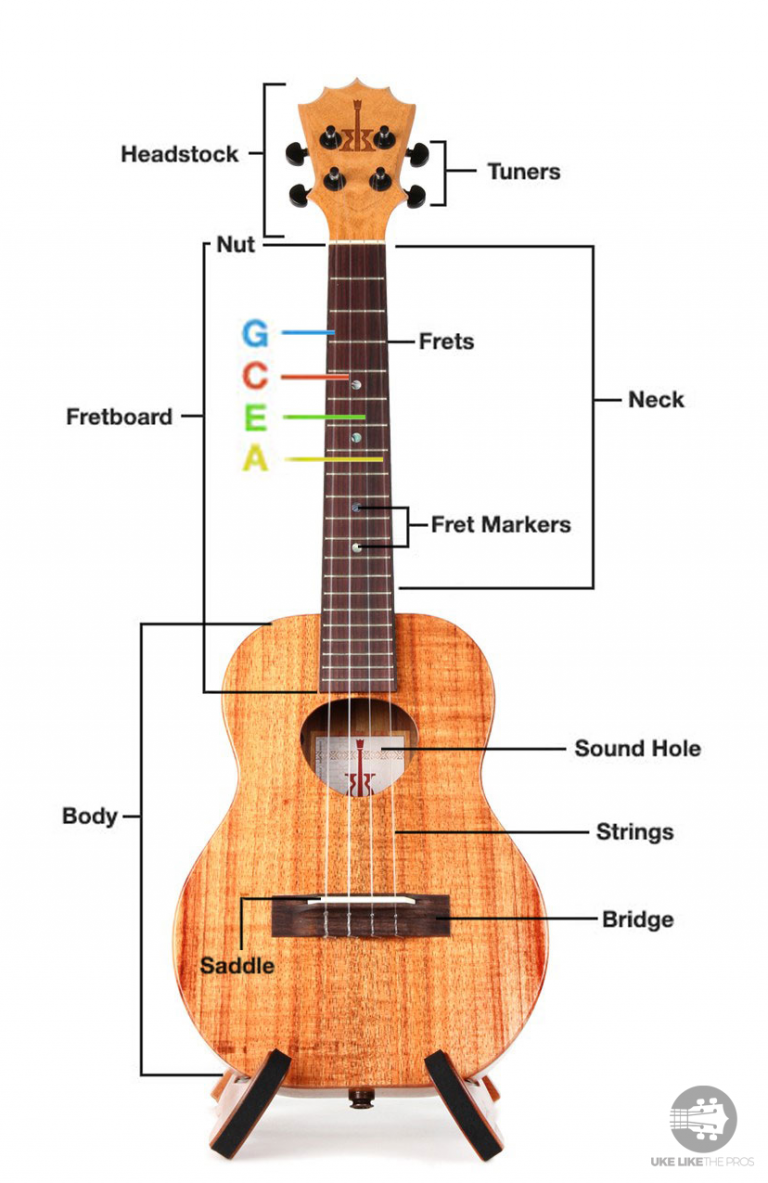 Parts of the Ukulele Sizes: 150 × 150 / 200 × 300 / 768 × 1,183 / 665 × 1,024 / 175 × 131 / 333 × 500 / 637 × 957